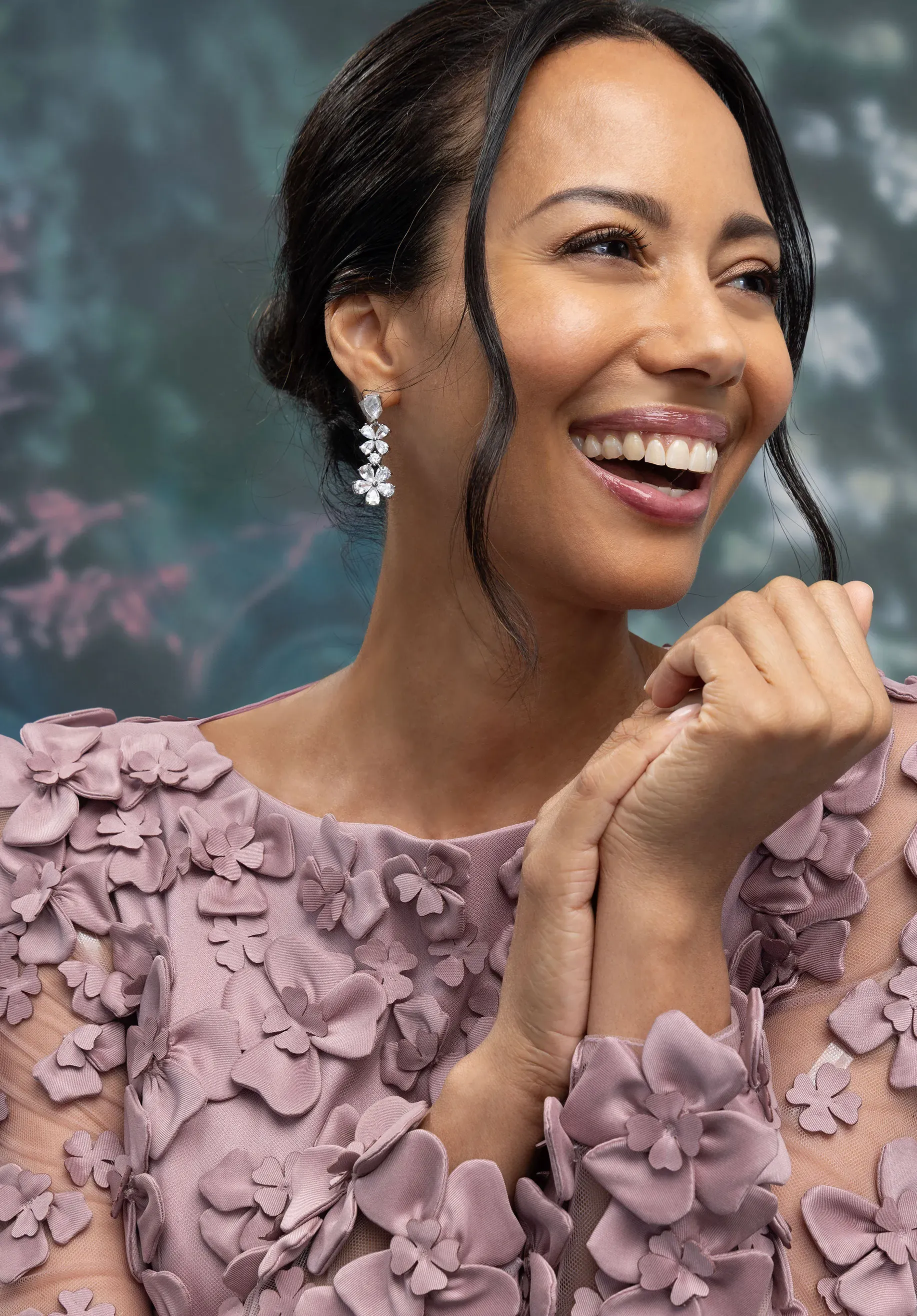 We carry select styles from each designer, and dresses often sell off the floor so availability changes regularly from what’s online.